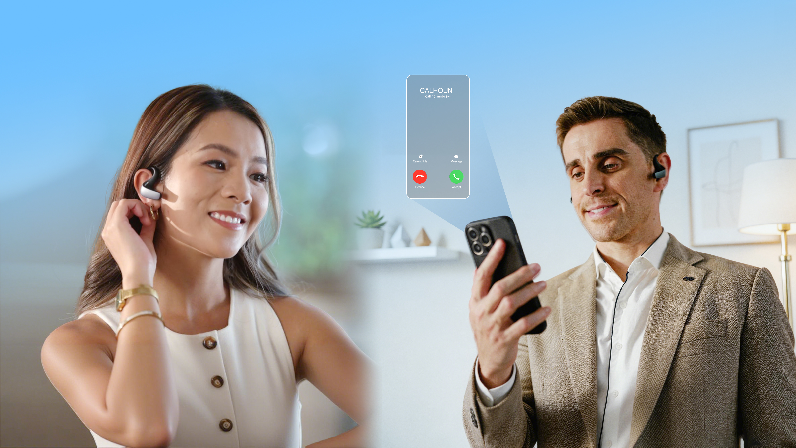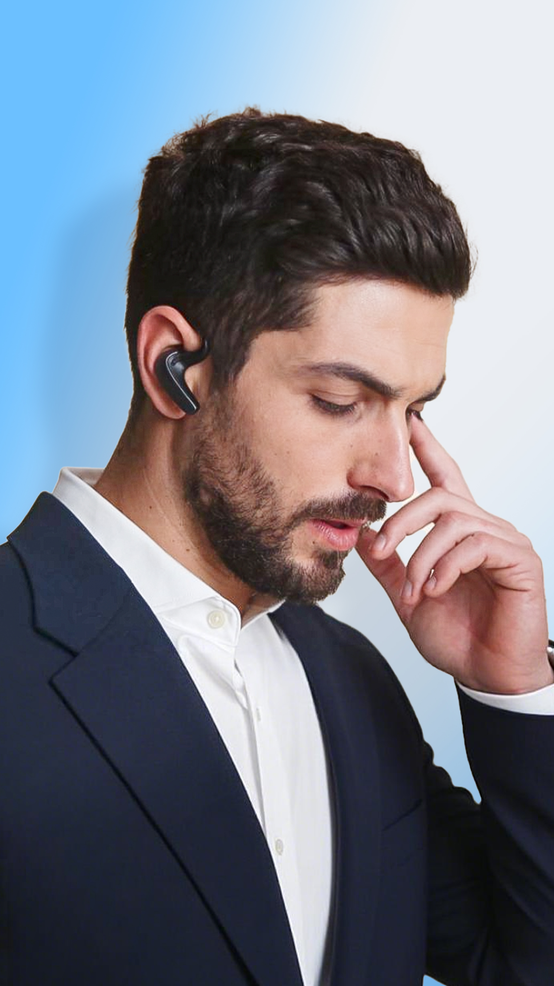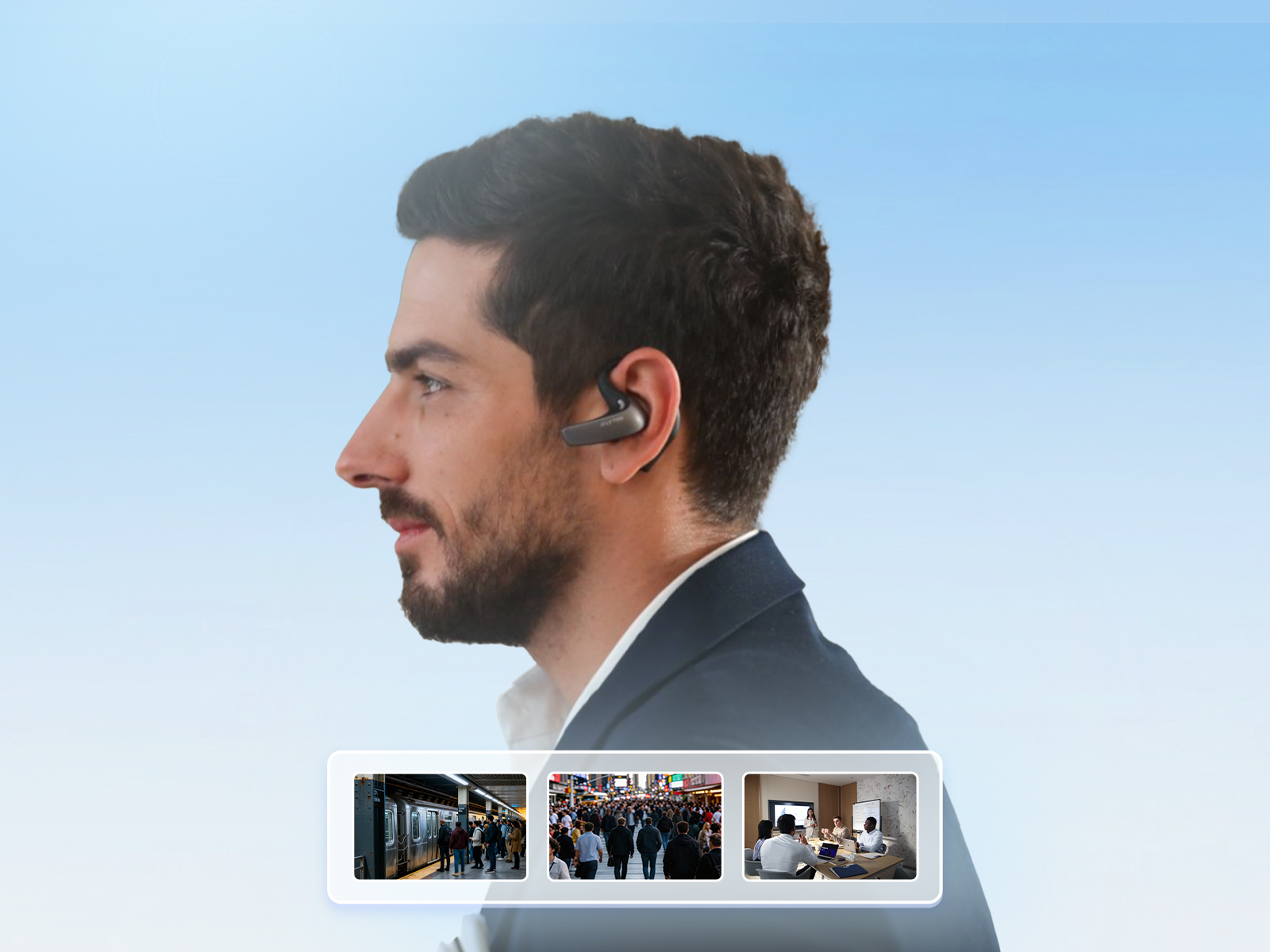1 bone-conduction mic + 2 air-conduction mics, Even in a noisy subway, your voice is the only thing they hear.