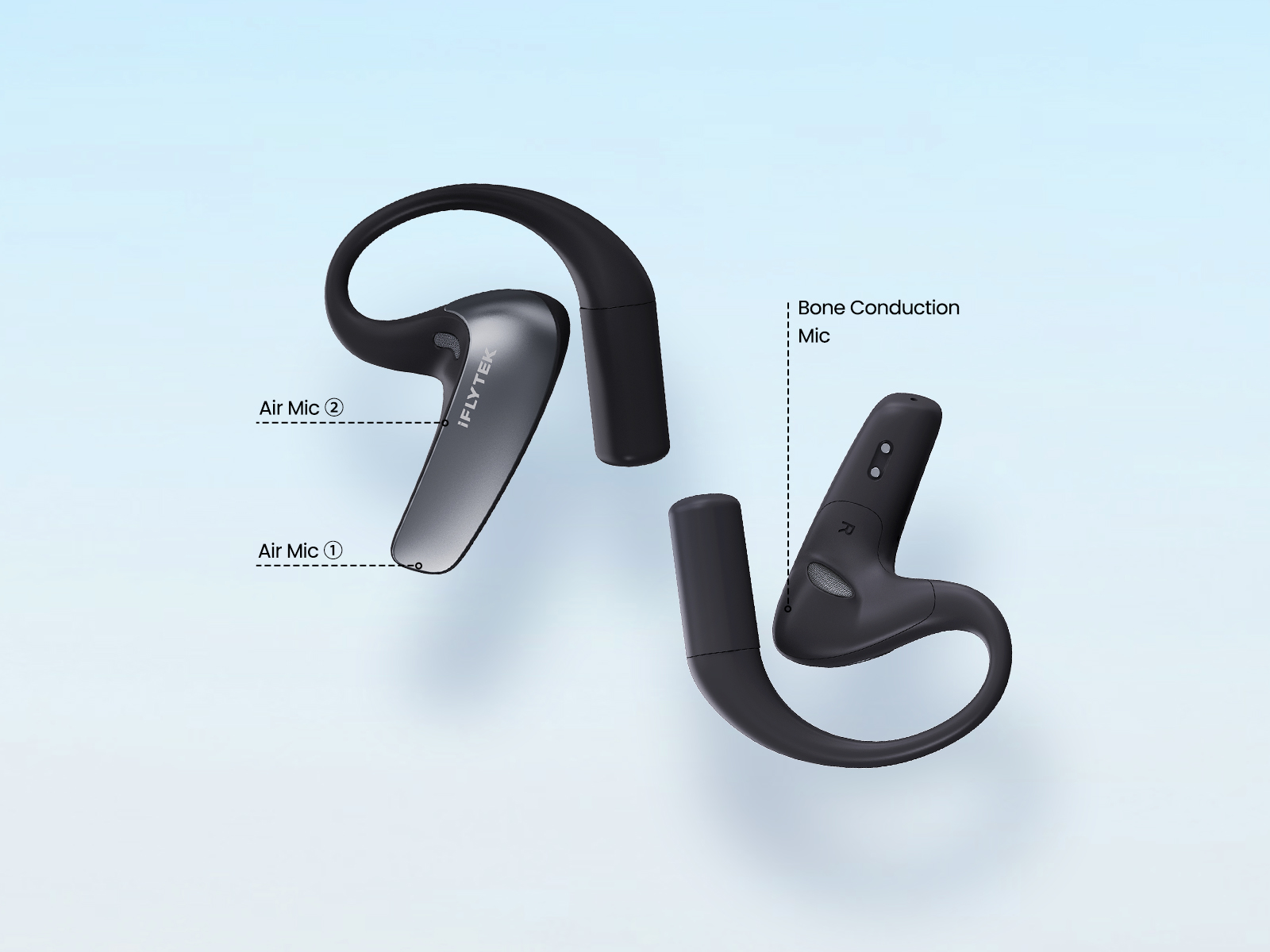 Yes, it features an open ear-hook design, and it is also iFLYTEK's first overseas professional translation earbud with the dual forms of "bone conduction + air conduction". It balances the effects of sound pickup and broadcast, and can also reduce sound leakage.