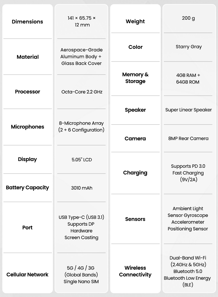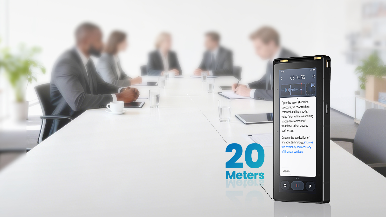20m Long-Range Recording: 2 directional + 6 omnidirectional mics, capturing clear voices up to 20m for large events.
