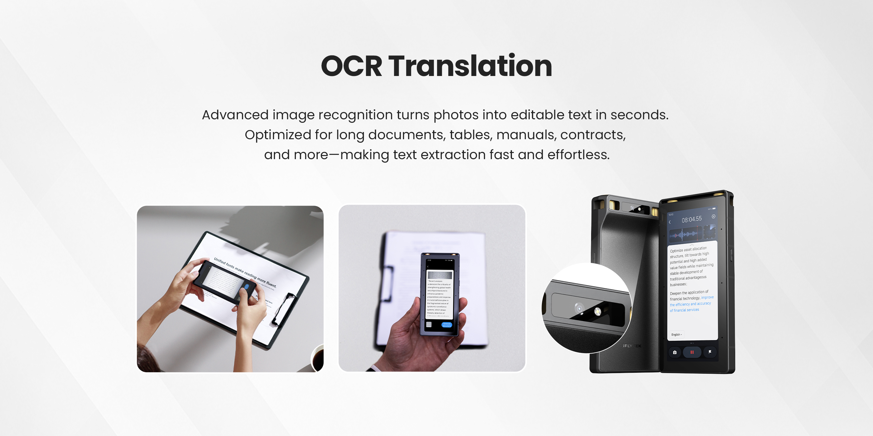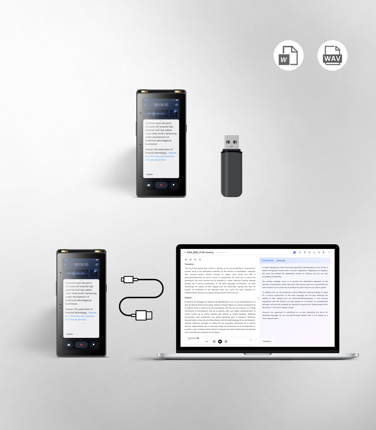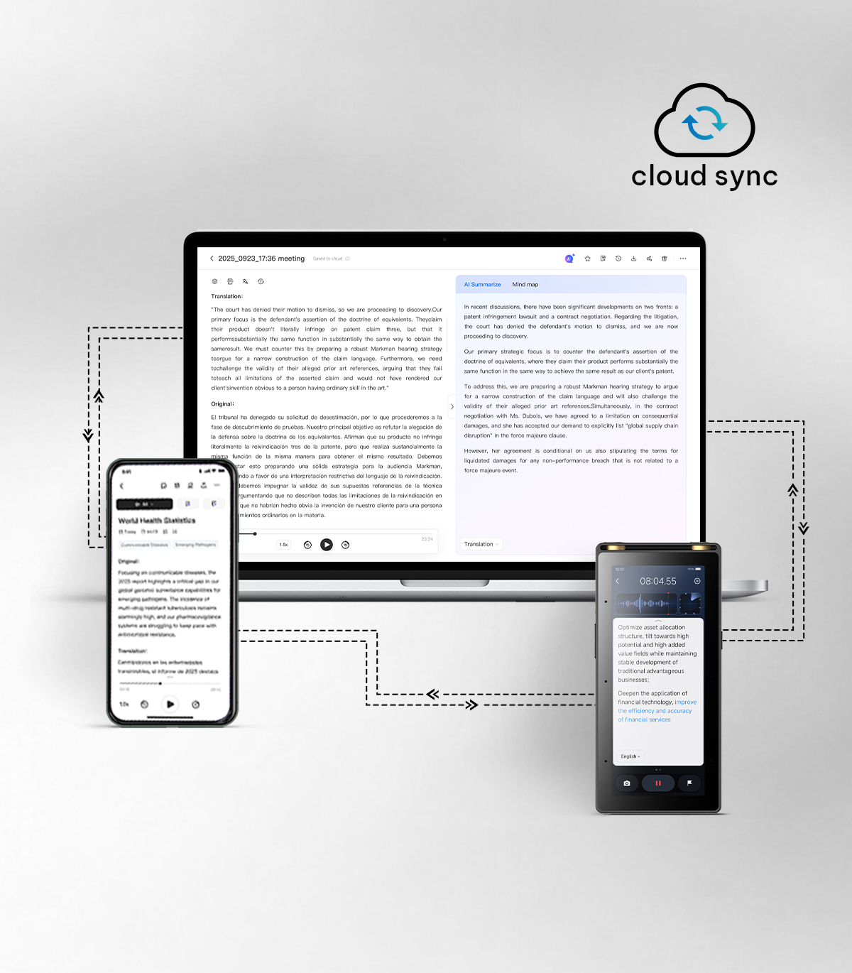Multi-Device Sync: Seamless audio and text sharing across phone, tablet, and computer via the cloud.