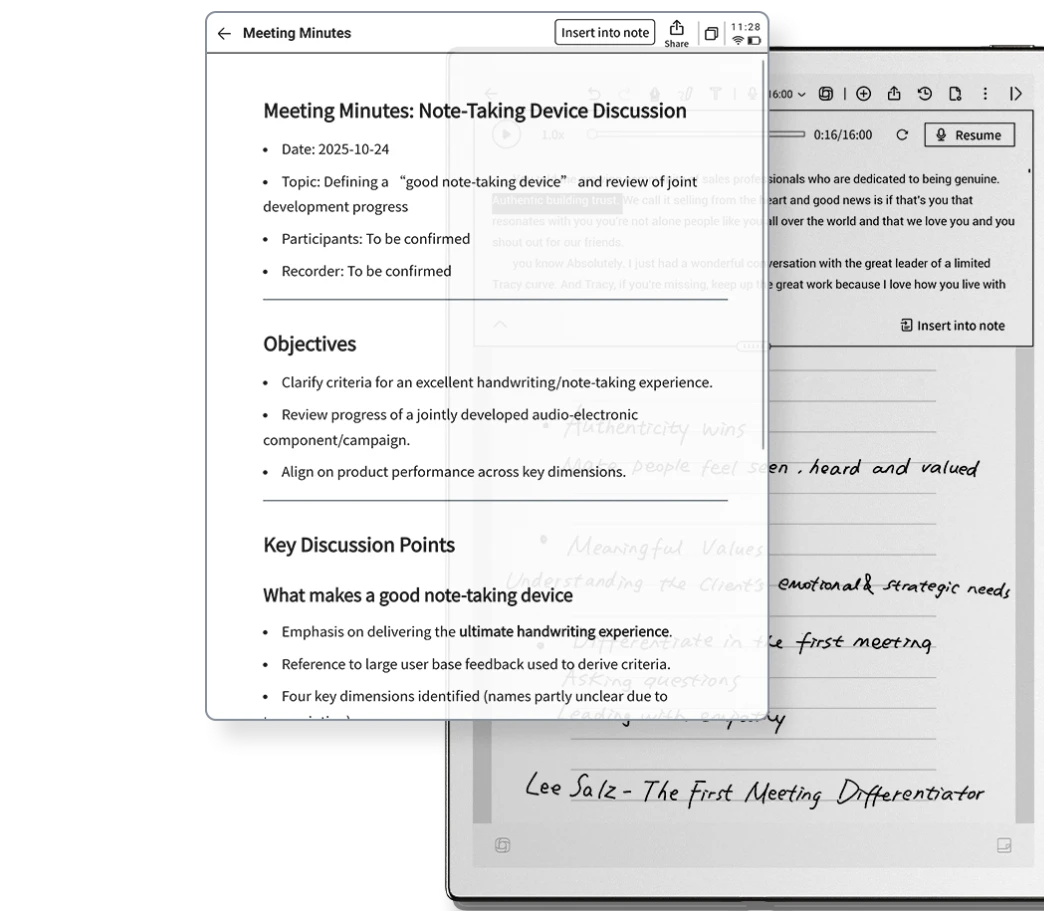 AINOTE 2 offers real-time translation for 11 languages. Engage in global multilingual meetings seamlessly, free from language obstacles, as though everyone were using the same language.