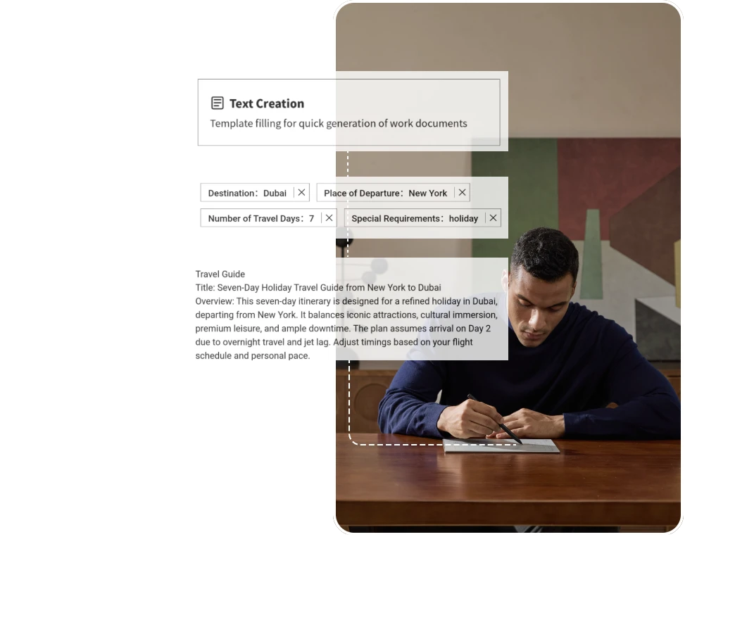 Your personal voice aide helps you create notes, log schedules, search documents, perform large-model searches, and beyond.