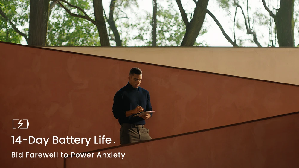 Up to 14 days of battery life on a full charge (based on typical usage). Switch to Airplane Mode + Deep Sleep for a maximum standby time of 113 days!