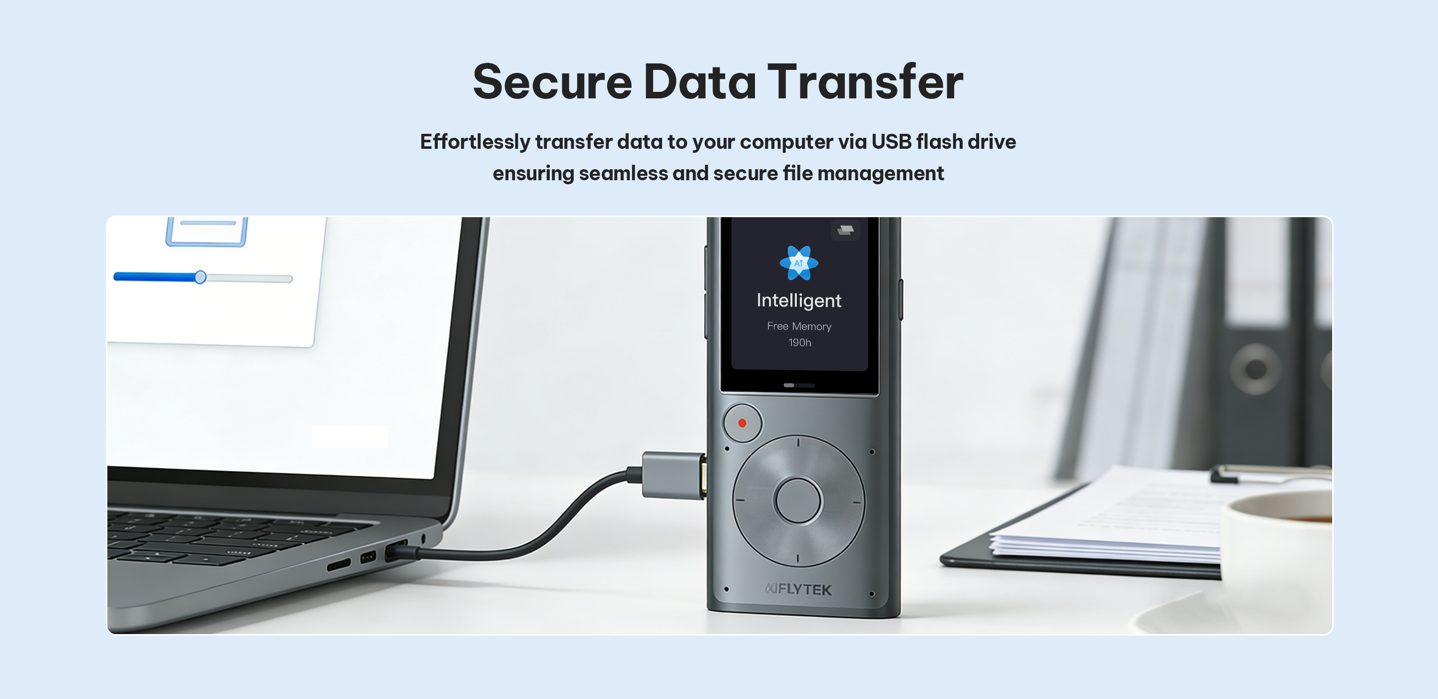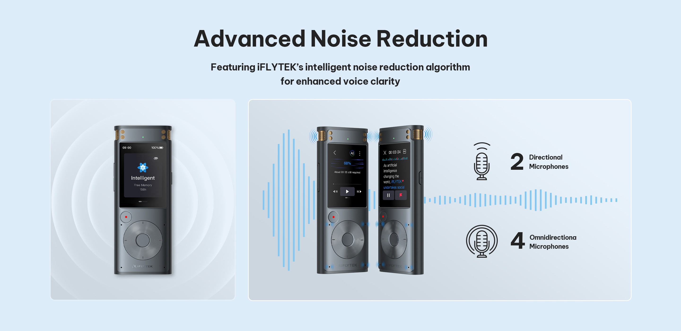 HD Noise Reduction: iFLYTEK auditory noise reduction algorithm effectively reduces noise interference, ensuring clear and error-free recordings in the office environment.