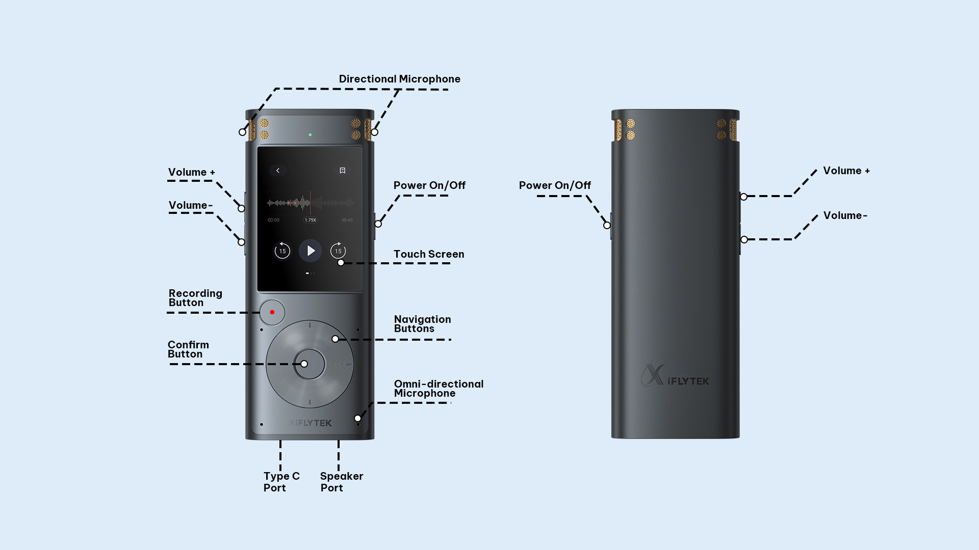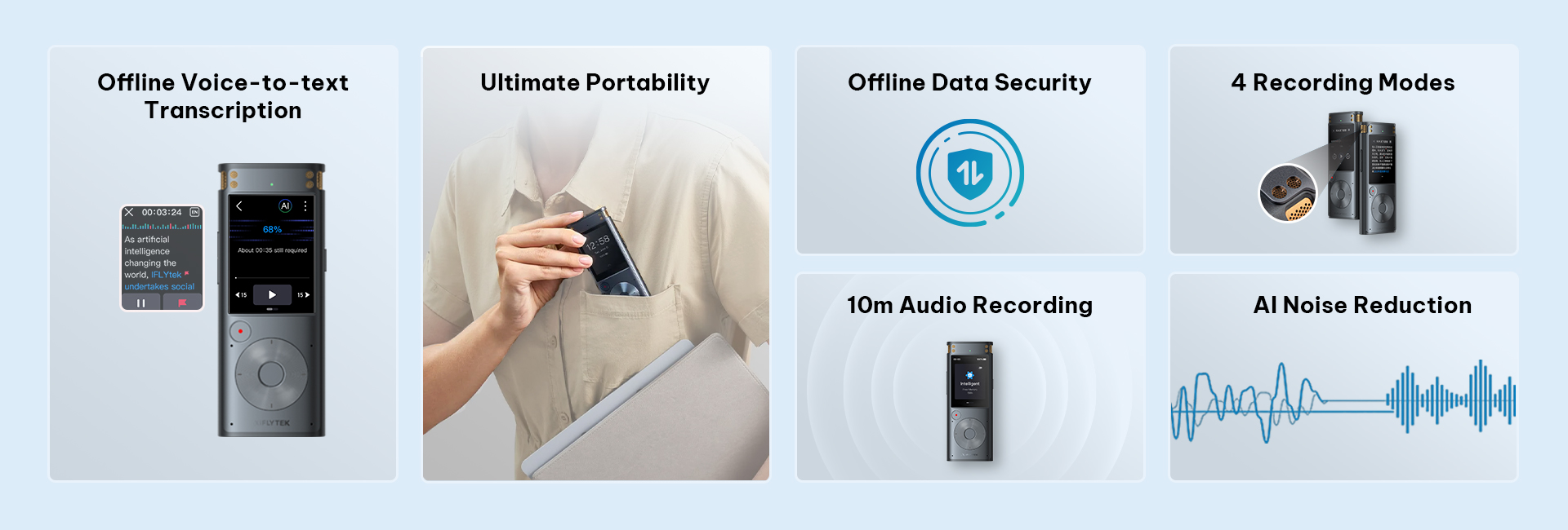 The iFLYTEK AI voice recorder is a reliable recording and transcription device with the following main features: