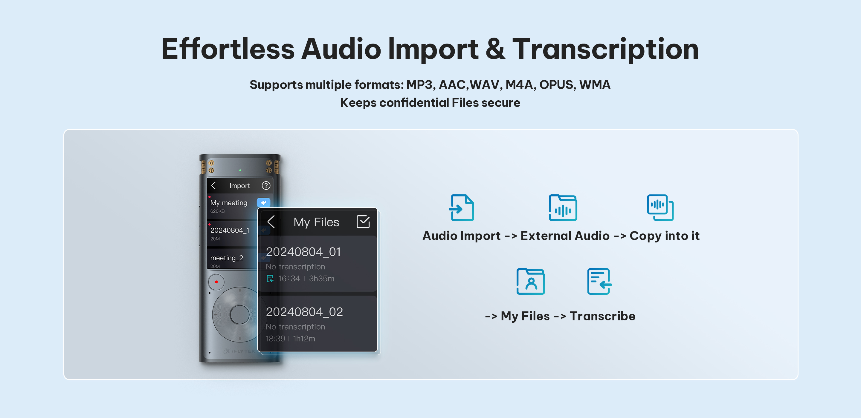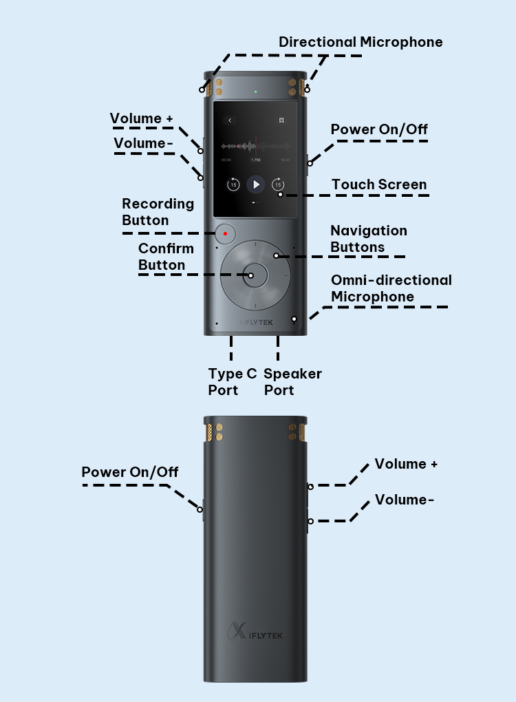 The iFLYTEK small recording devices are equipped with powerful AI voice recognition technology and, a built-in octa-core 64-bit high-performance processor, which greatly enhances the AI computing performance. A voice recorder device can automatically convert the recording content to text, helping users to efficiently organize meeting minutes or classroom notes.