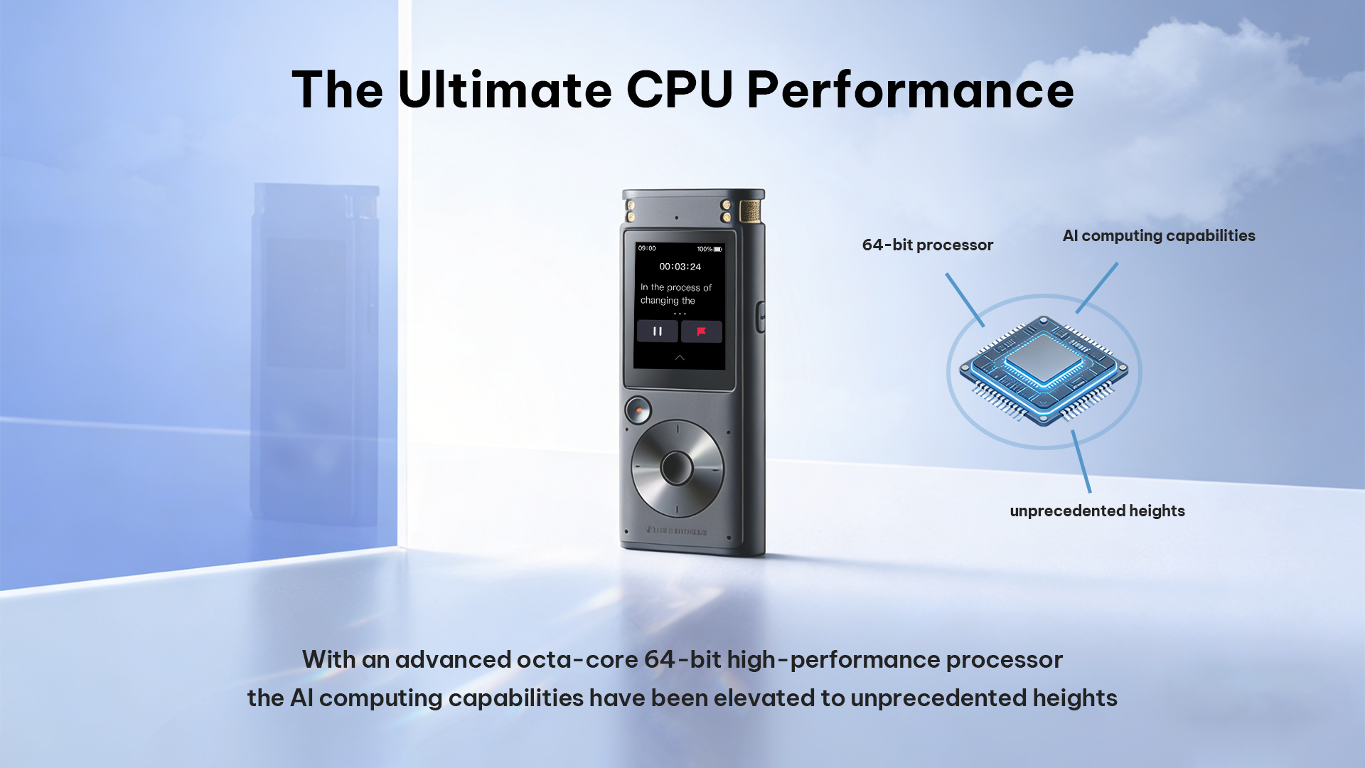 Powerful performance: Equipped with a high-efficiency octa-core processor, it quickly transcribes and processes large amounts of voice data to enhance work efficiency.